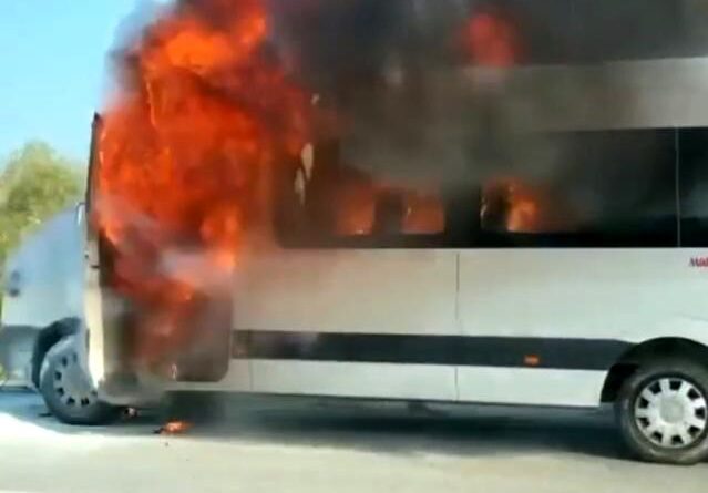Mudanya ‘da seyir halindeki servis minibüsü alevlere teslim oldu. Edinilen bilgiye göre, Mudanya istikametine doğru ilerlediği sırada aldığı kokuyla araçtan inen servis minibüsü şoförü, aracı yolun sağına çekti.