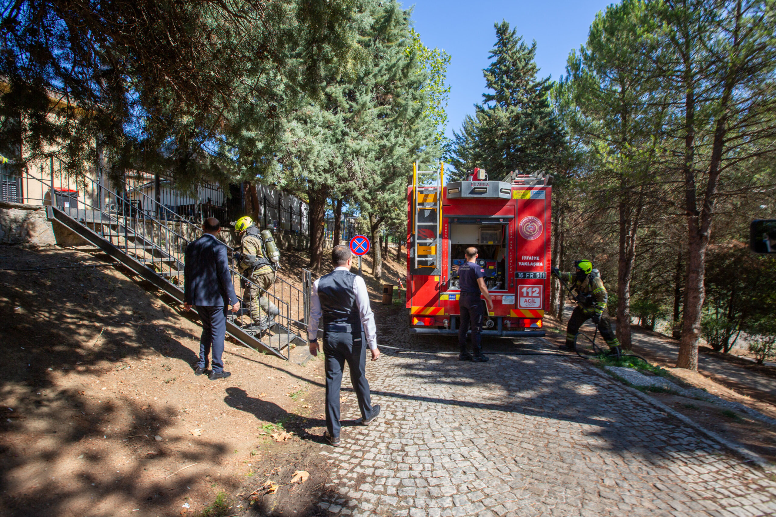 Senaryo gereği BURFAŞ personeli tarafından itfaiye şefliğine yangın ihbarında bulunuldu. Yangın müdahale ekibi ise binaların koordineli bir şekilde boşaltılmasını sağladı. Görevlendirilen gözlemciler, tüm ekiplerin görev alanına ulaşma sürelerini, müdahale süreçlerini ve yangının söndürülme performansını kaydetti.