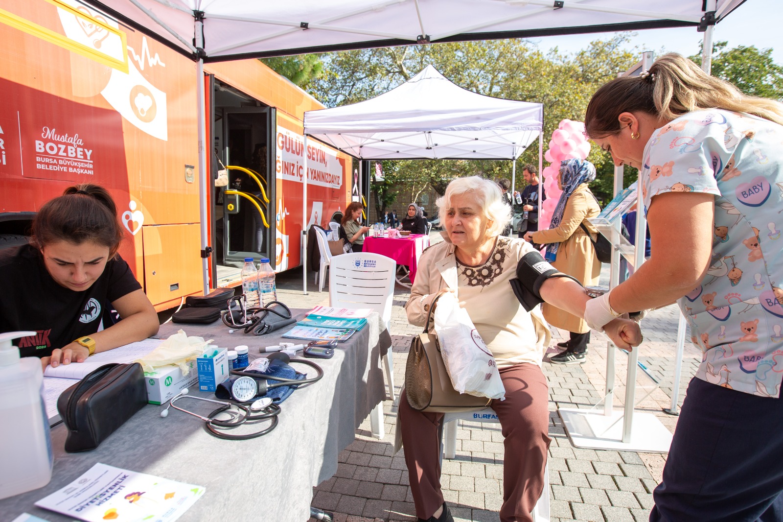 Bursa Büyükşehir Belediyesi, 1-31 Ekim Meme Kanseri Farkındalık Ayı’nda çeşitli etkinliklerle halk sağlığına dikkat çekmeye devam ediyor. Sağlık İşleri Dairesi Başkanlığı Halk Sağlığı ve Sağlıklı Yaşam Şube Müdürlüğü tarafından Orhangazi Parkı’nda düzenlenen programda, İstanbul Tıp Fakültesi’nden Genel Cerrahi ve Meme Cerrahisi Uzmanı Doç. Dr. Selman Emiroğlu tarafından Sağlık Otobüsü içerisinde kadınlara ücretsiz muayene yapıldı. Alanda ücretsiz şeker ve tansiyon ölçümleri de yapan Büyükşehir Belediyesi hekimleri, vatandaşlara erken teşhis konusunda bilgilendirme broşürleri dağıttı.
