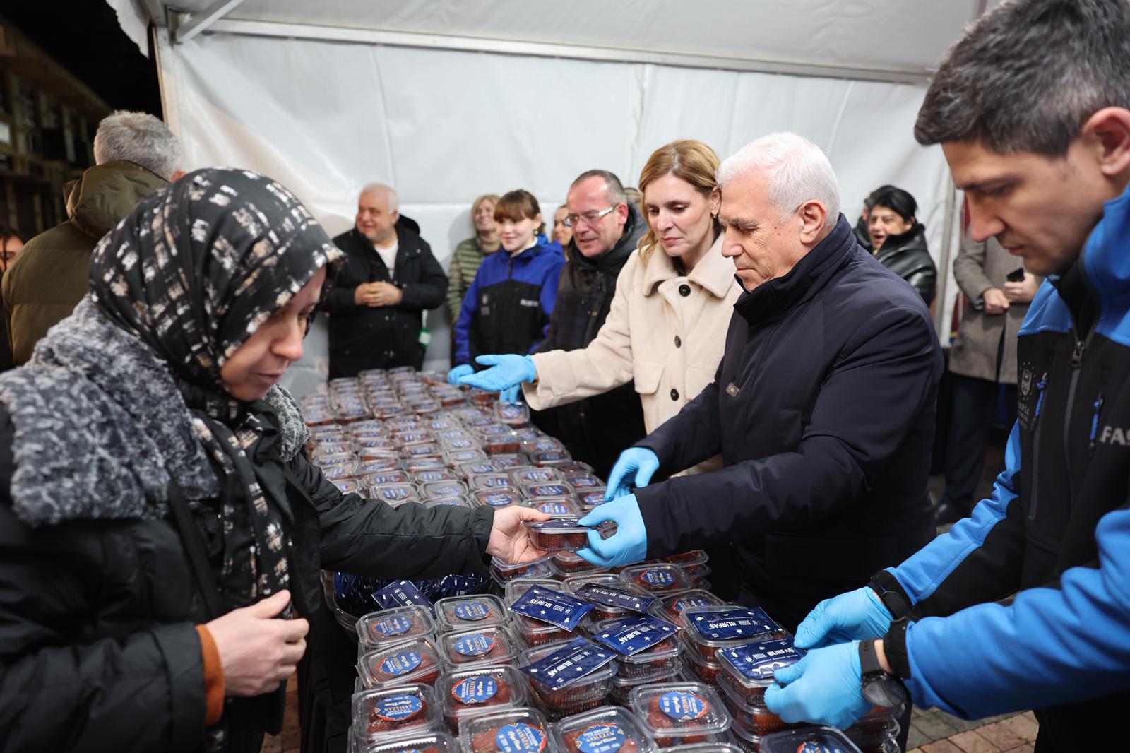 BURSA – Bursa Büyükşehir Belediye Başkanı Mustafa Bozbey, eşi Seden Bozbey ile birlikte Ramazan ayının başlangıcında Ulu Cami’de kılınan ilk teravih namazının ardından, Ramazan’ın hayırlı ve bereketli olmasını dileyerek vatandaşlara tatlı ikramında bulundu.