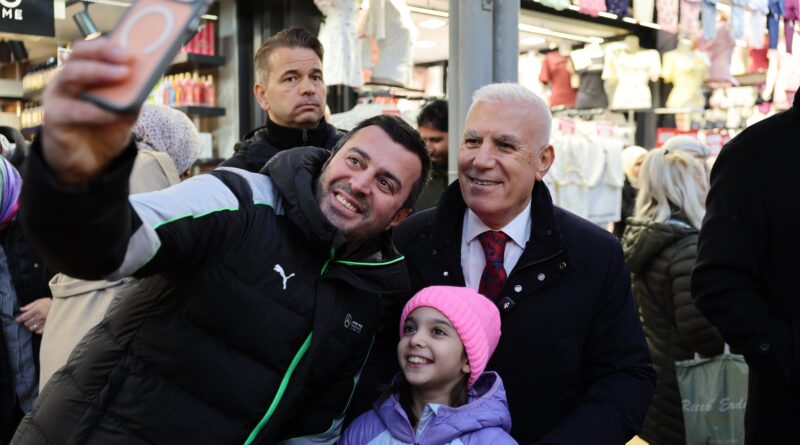 BURSA – Paylaşmanın ve dayanışmanın ayı Ramazan boyunca 17 ilçede vatandaşlarla iftar sofralarında bir araya gelen Bursa Büyükşehir Belediye Başkanı Mustafa Bozbey, Ramazan Bayramı öncesi son oruç gününde de Bursa’nın kalbi konumundaki Tarihi Çarşı ve Hanlar Bölgesi’ni ziyaret etti.